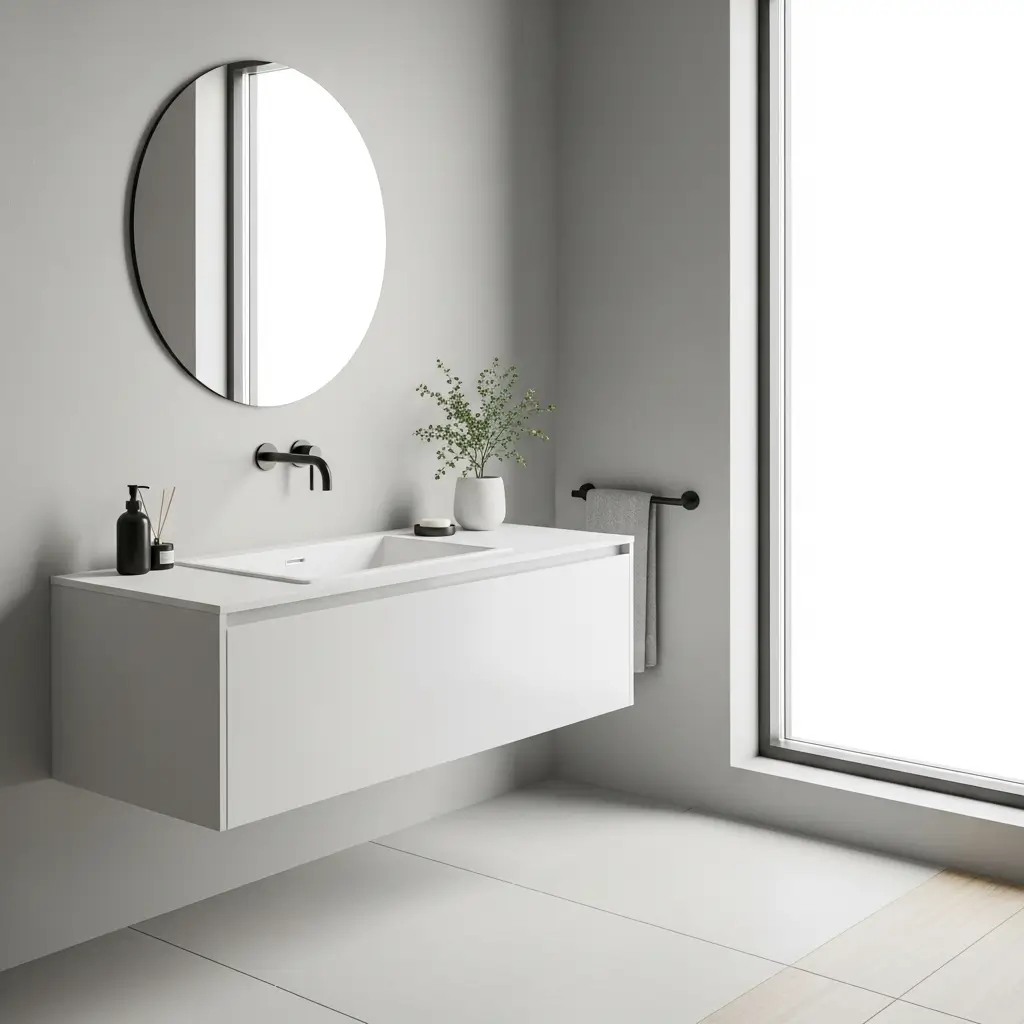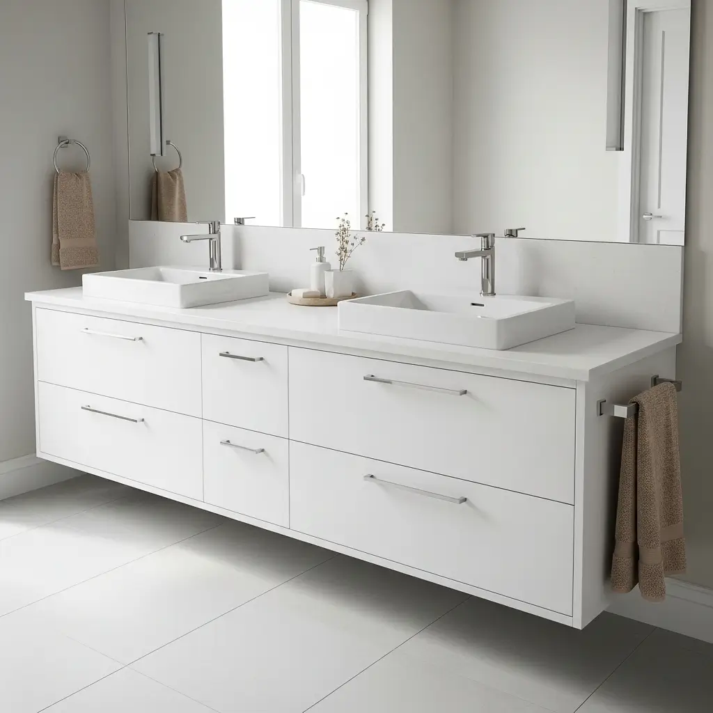 The key to white vanity success is choosing the right white for your space. Pure white works in modern and minimalist settings. Warm whites suit farmhouse and traditional styles.