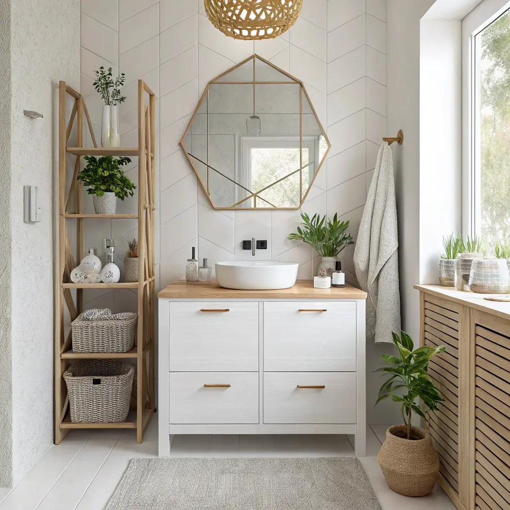 Scandinavian white vanities combine clean white surfaces with natural materials and minimal ornamentation. Function and beauty exist in perfect harmony.