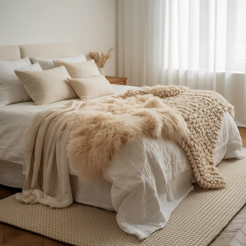 Layering white textures creates visual interest without adding color chaos. My all-white bedroom has twelve different textures, and it’s anything but boring. Each layer adds depth and invites touch.
