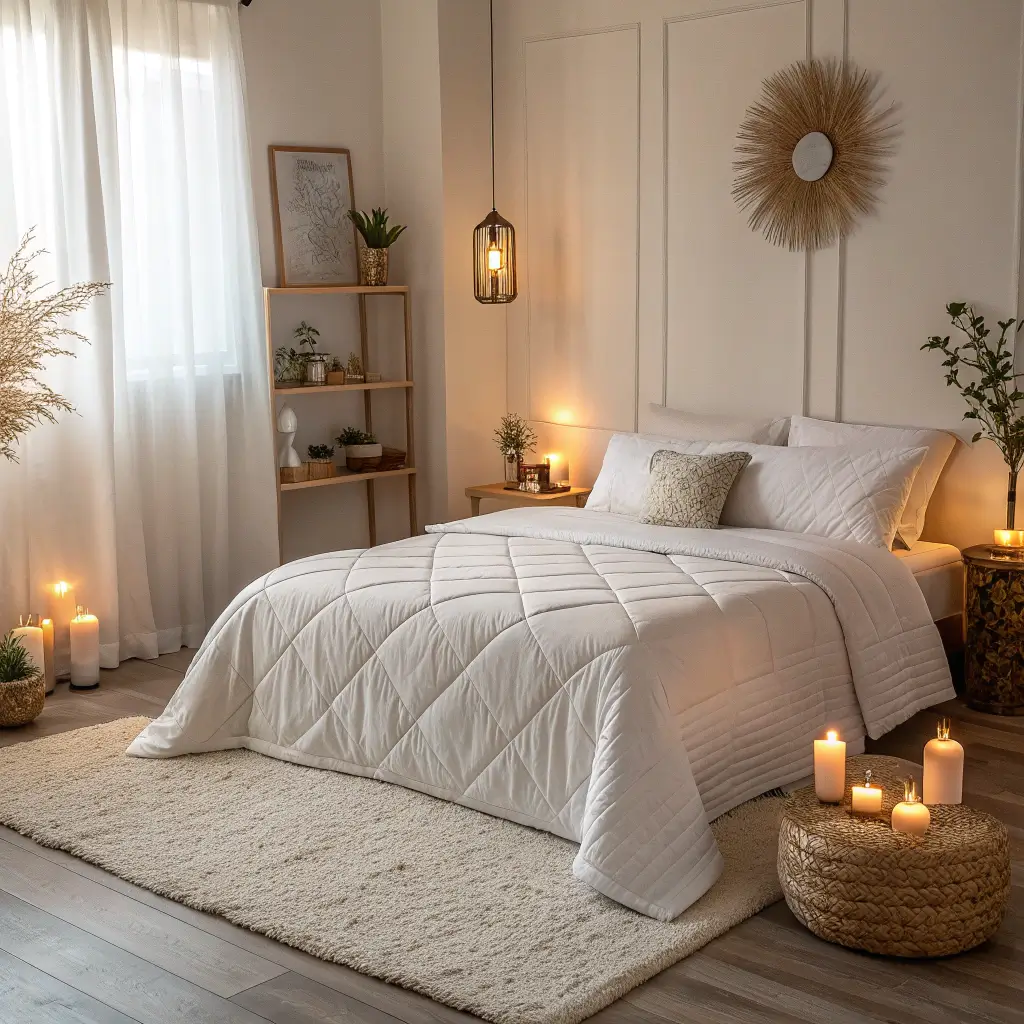 Bohemian style usually means color chaos, but a white comforter lets you channel boho energy without the visual overload. You get that free-spirited vibe while maintaining actual calm.