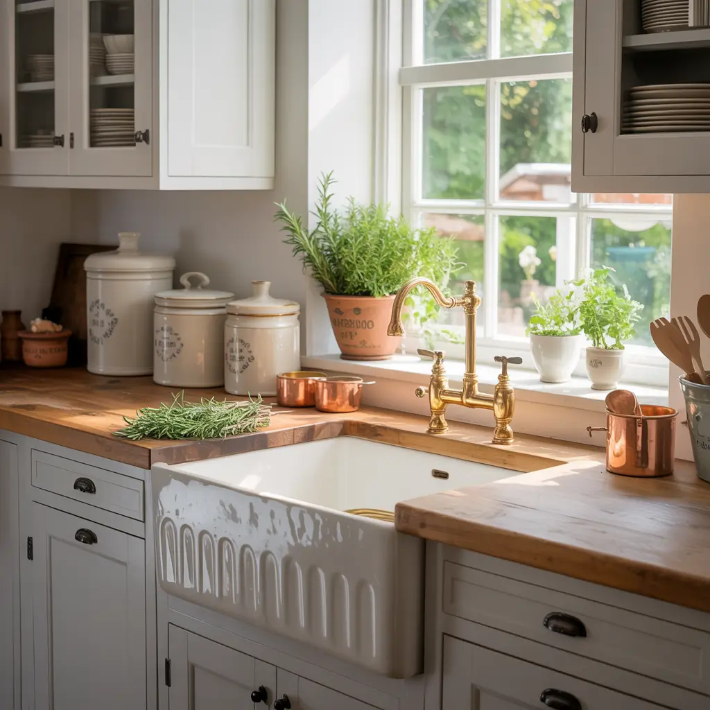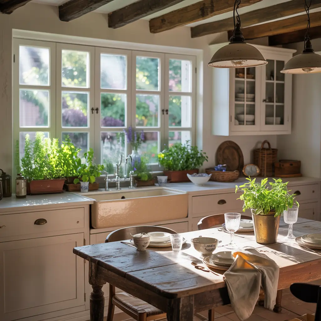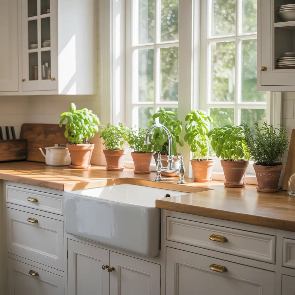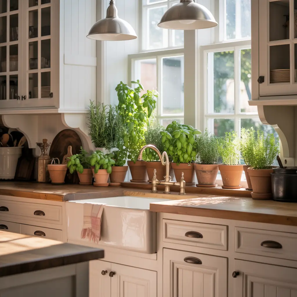 White Farmhouse Kitchen with Indoor Herb Garden