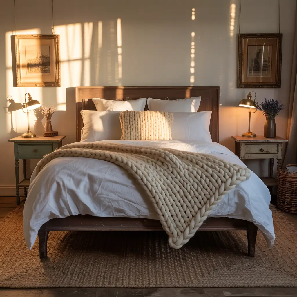 Layer textures to prevent your white farmhouse furniture from feeling cold. Add chunky knit blankets, linen bedding, woven baskets, and vintage quilts. These elements create that cozy farmhouse feeling while your white furniture keeps everything feeling fresh and current.