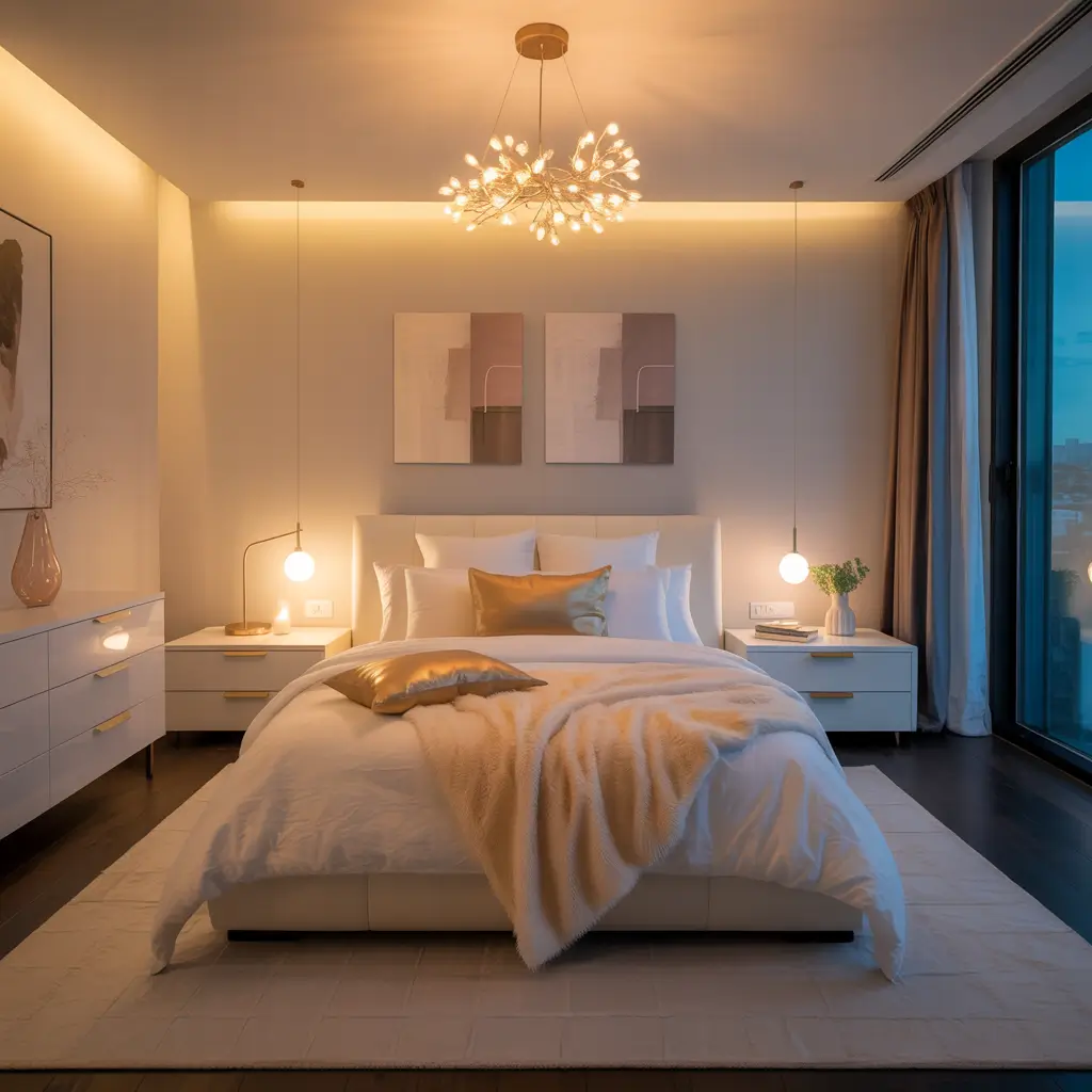 The key to white and gold bedrooms lies in restraint. Think of gold as jewelry for your room—a little goes a long way. Too much gold starts looking gaudy rather than glamorous.