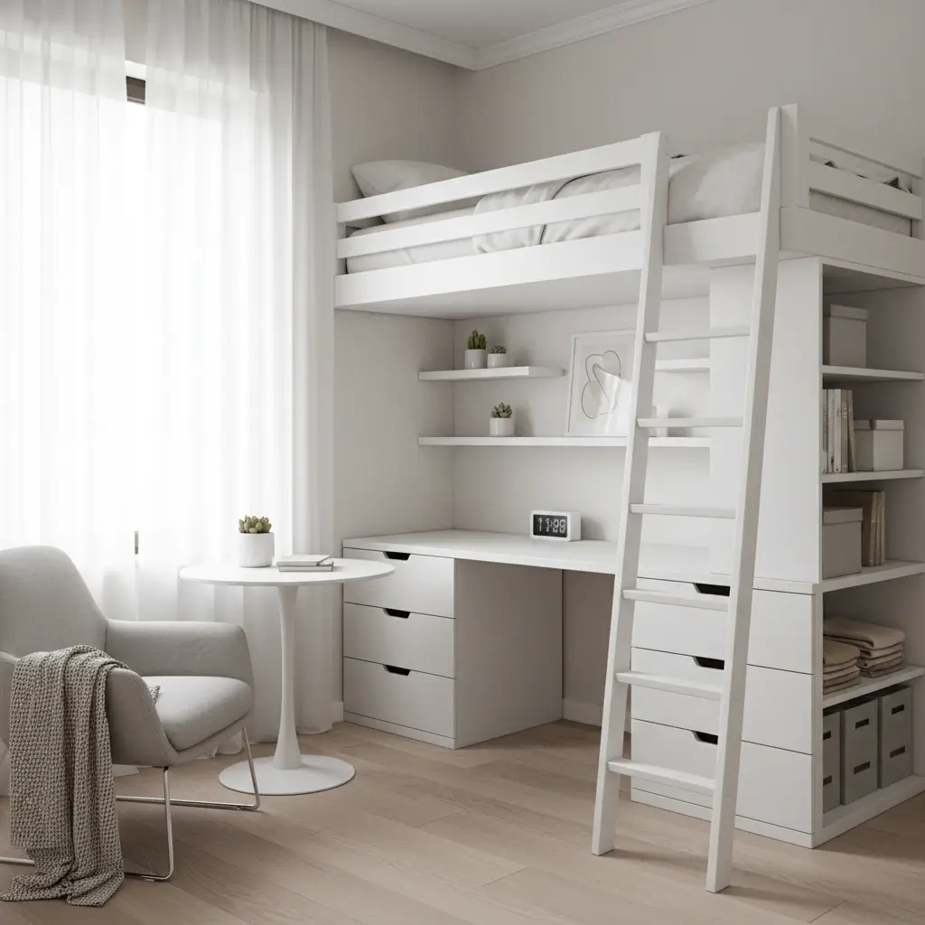 The beauty of white space-saving furniture lies in its ability to disappear visually. That storage-packed platform bed looks lighter than a simple dark frame. Optical illusions matter in small spaces.