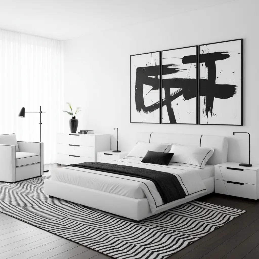 Quality materials elevate black and white contrast beyond basic. Matte black hardware feels more expensive than shiny. Crisp white furniture with true black accents looks better than off-white with charcoal.