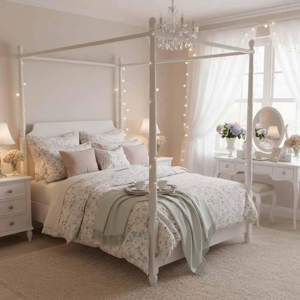 10. Romantic White Bedroom with Soft Pastel Accessories