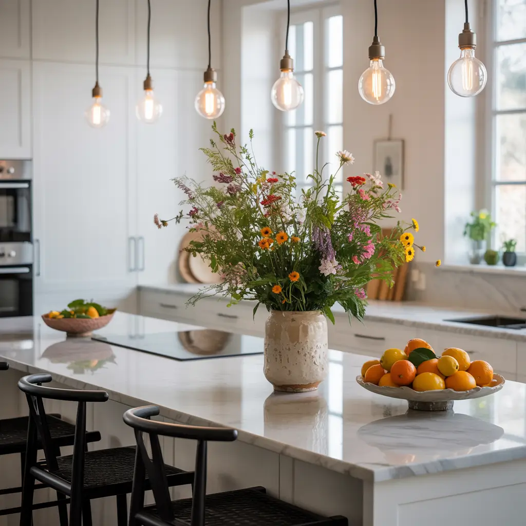 Statement fixtures work beautifully in white kitchens. That bold chandelier or oversized pendant becomes art against the white canvas. My black geometric pendants get more compliments than my marble countertops.