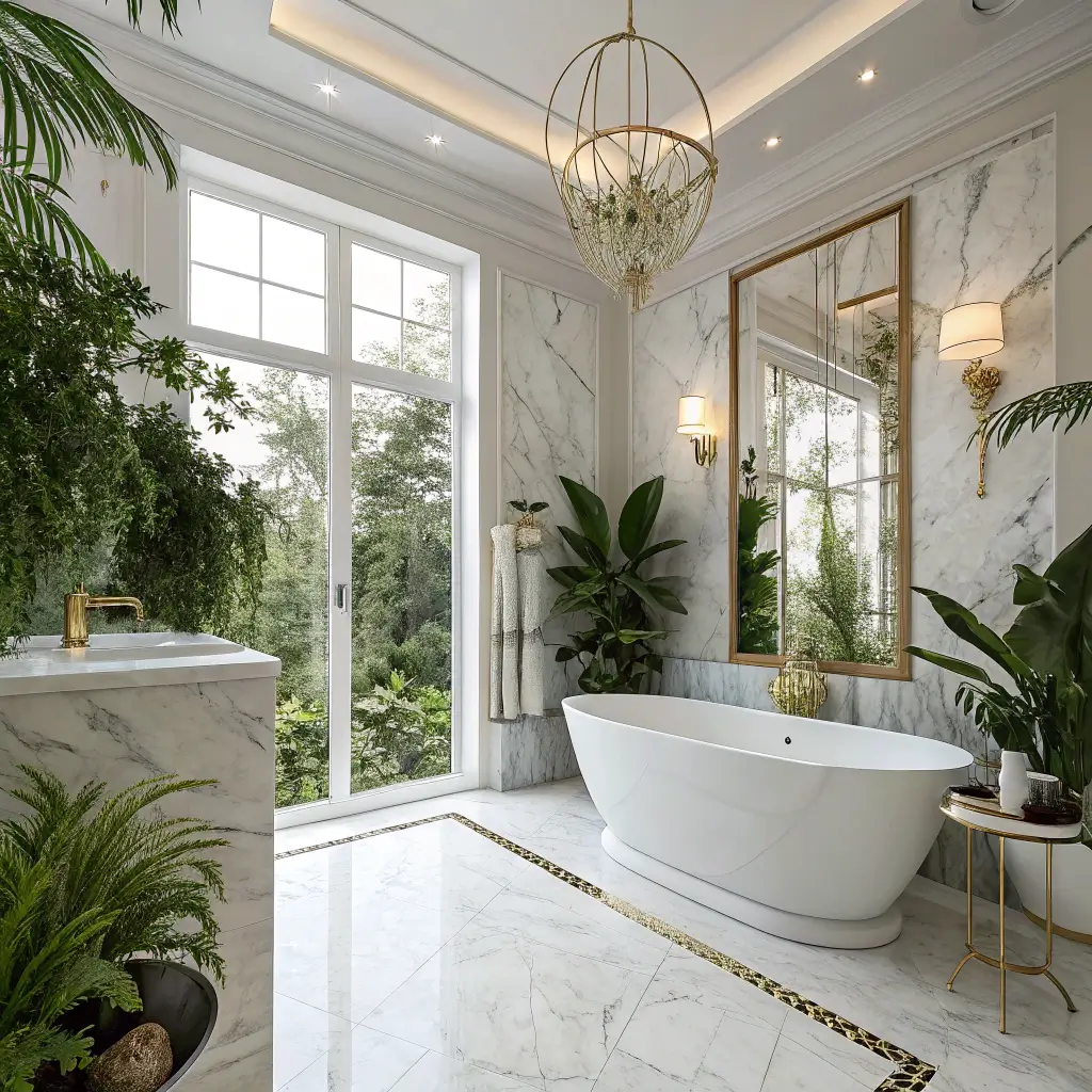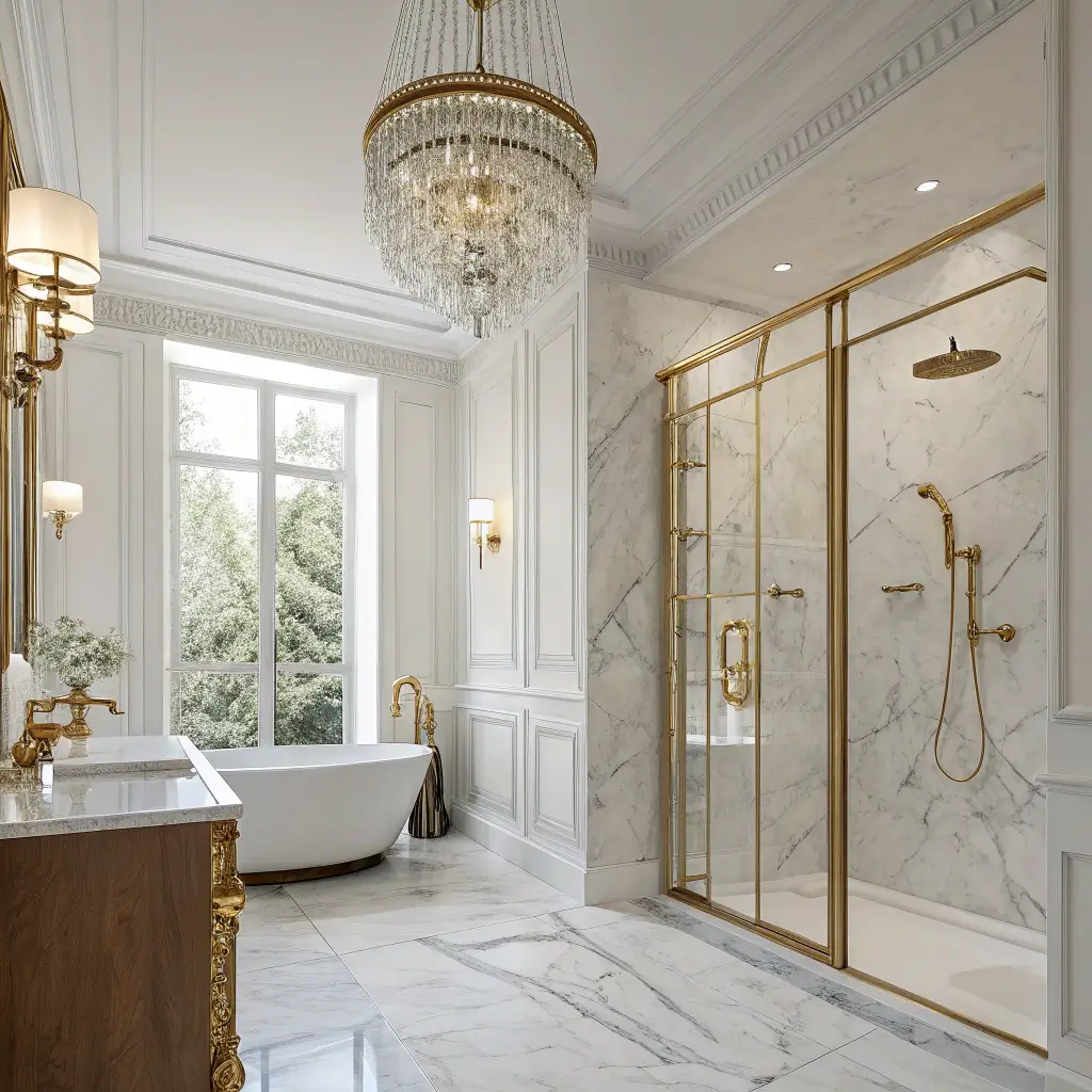 The trick to pulling off gold accents? Restraint. I’ve seen bathrooms where gold overwhelms the marble, and it looks more Vegas than luxury. Let the white marble tiles be the star while gold plays a supporting role.