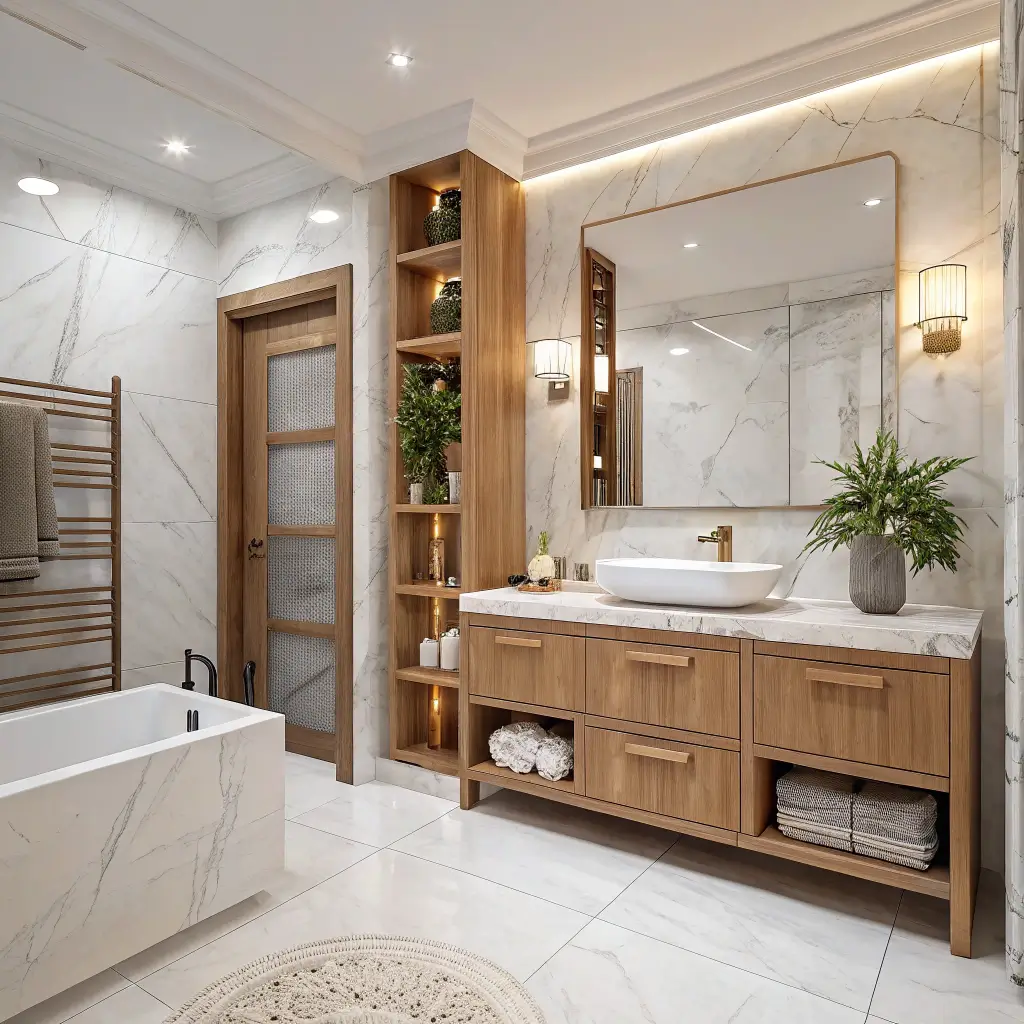 Don’t skip the heated floors. I installed radiant heating under white marble tiles, and now cold winter mornings feel like a luxury. The gentle warmth turns your bathroom into a cocoon you don’t want to leave.