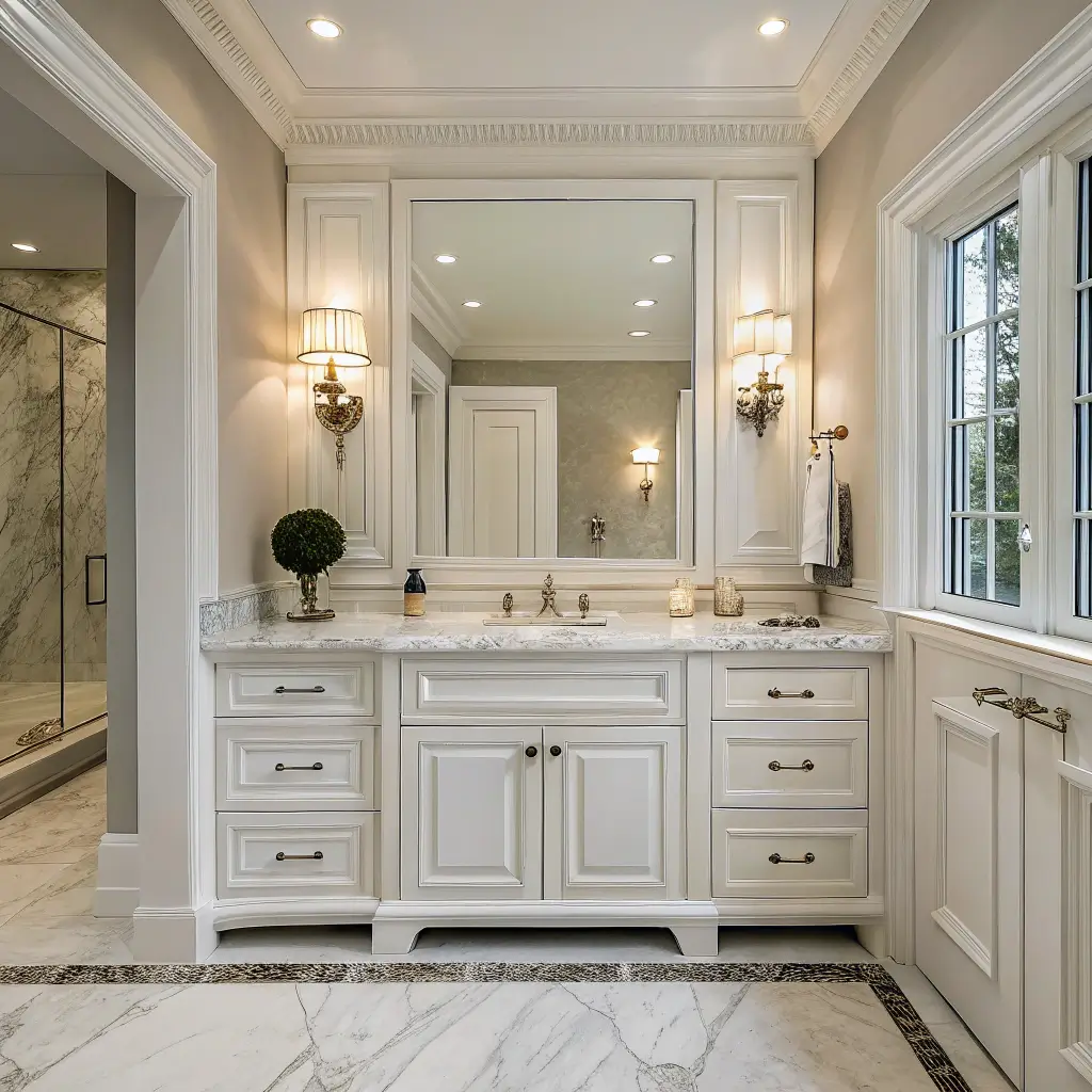 Consider the edge detail on your marble vanity top. A simple eased edge keeps things classic, while an ogee or beveled edge adds traditional elegance. I chose a mitered waterfall edge where the marble cascades down the sides – expensive but absolutely worth it.