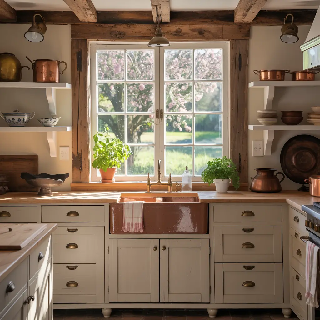 My neighbor’s white oak kitchen feels like a warm hug. She stained her cabinets in a honey tone, added copper hardware, and paired everything with cream-colored walls. Walking into that kitchen makes you want to bake bread and solve world problems over coffee.