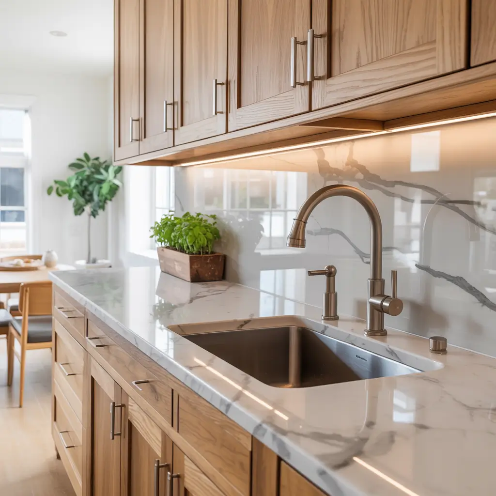 I recently helped my best friend design her minimalist kitchen, and we went with white oak cabinets in a natural finish. The result? A space that feels zen-like and calming but never boring. She paired them with white quartz countertops and a simple white subway tile backsplash, letting the wood provide all the personality the room needed.