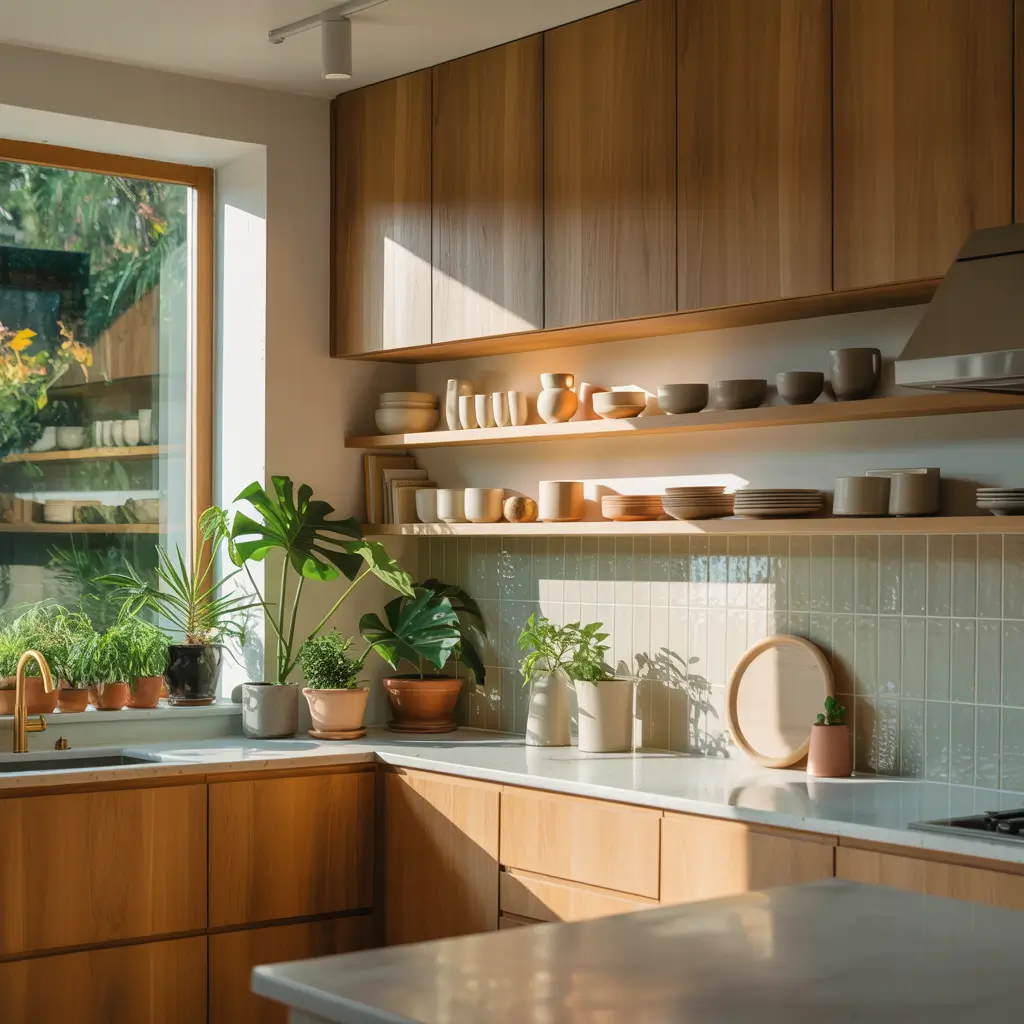 My current obsession? White oak cabinets with zellige tiles in deep emerald green. The organic nature of both materials creates harmony despite the bold color choice. The wood’s warmth balances the cool green perfectly.