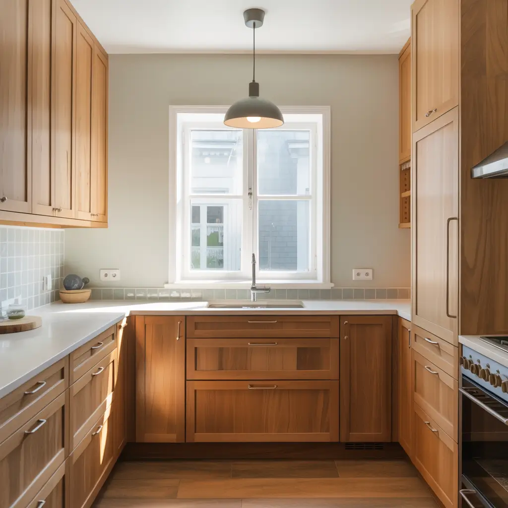 My first apartment kitchen was basically a hallway with appliances, but white oak cabinets made it feel twice as large. The key was maintaining consistency – same wood, same finish, minimal hardware. Too many different elements in a small space create visual chaos.