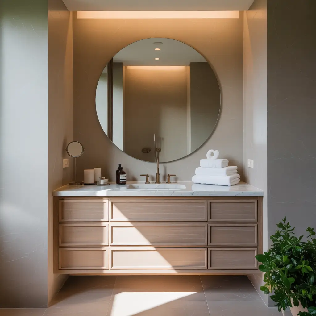 White Oak Vanity Paired with Neutral Bathroom Colors