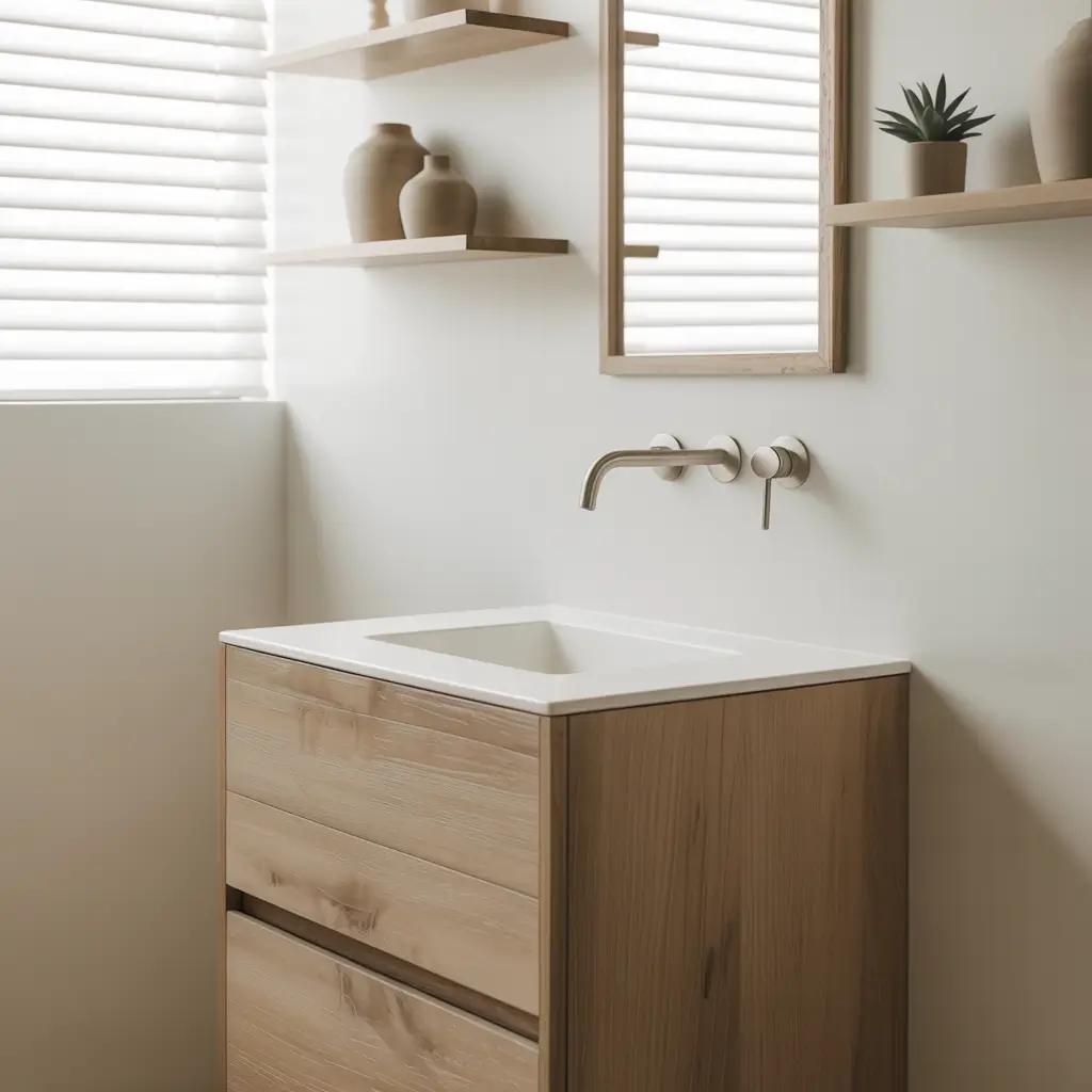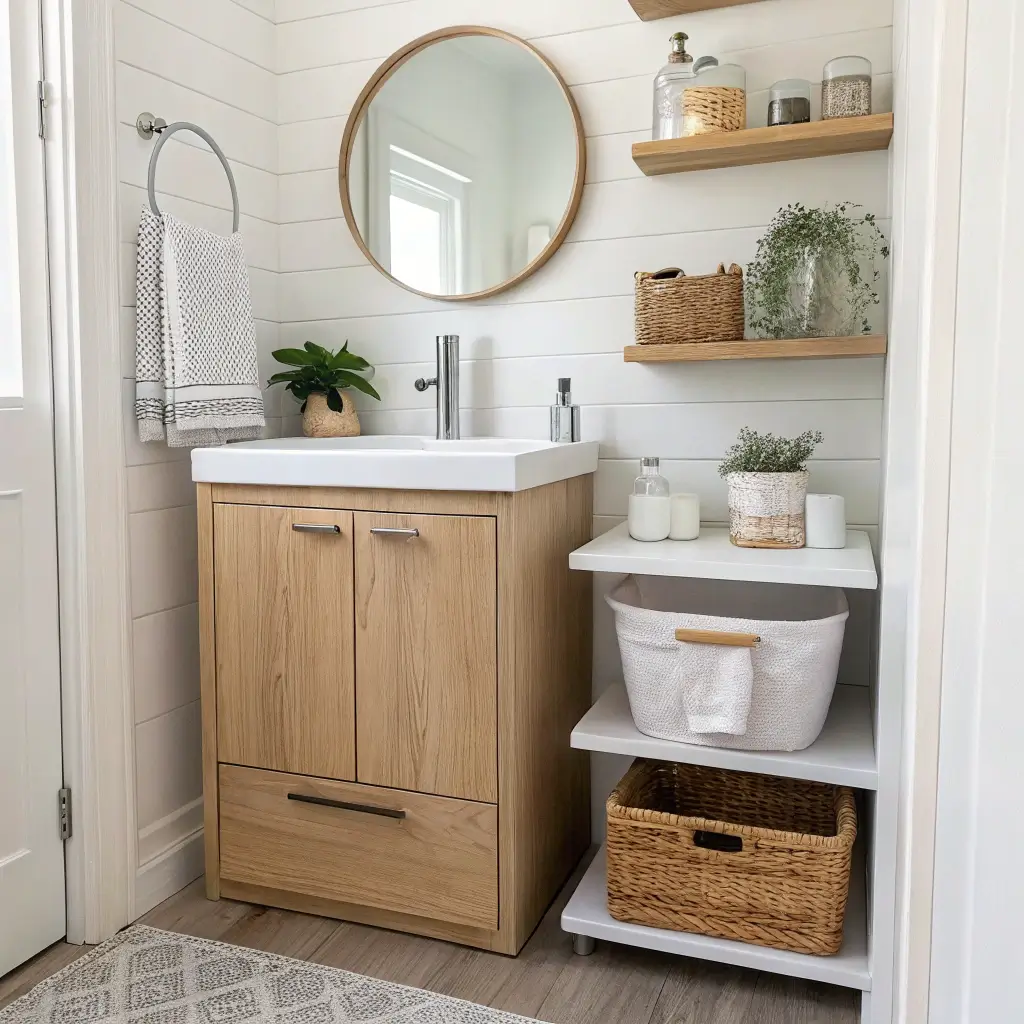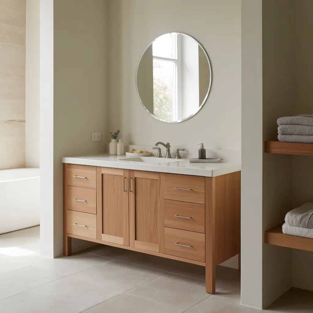 Space-Saving White Oak Vanity Designs for Tiny Bathrooms