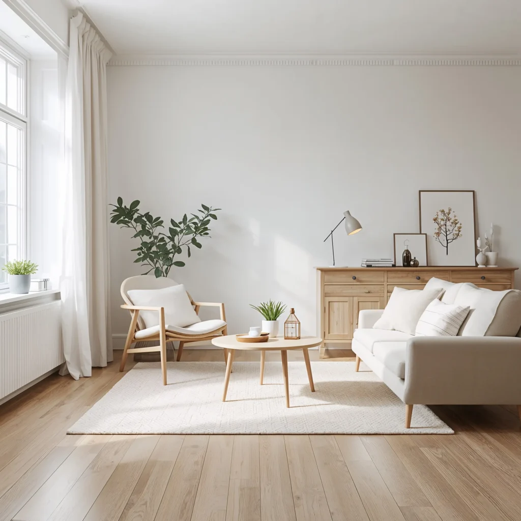 I learned the hard way that Scandi style isn’t about making everything stark white. You need those wood accents and soft textures to prevent your room from feeling like an igloo. Trust me on this one.