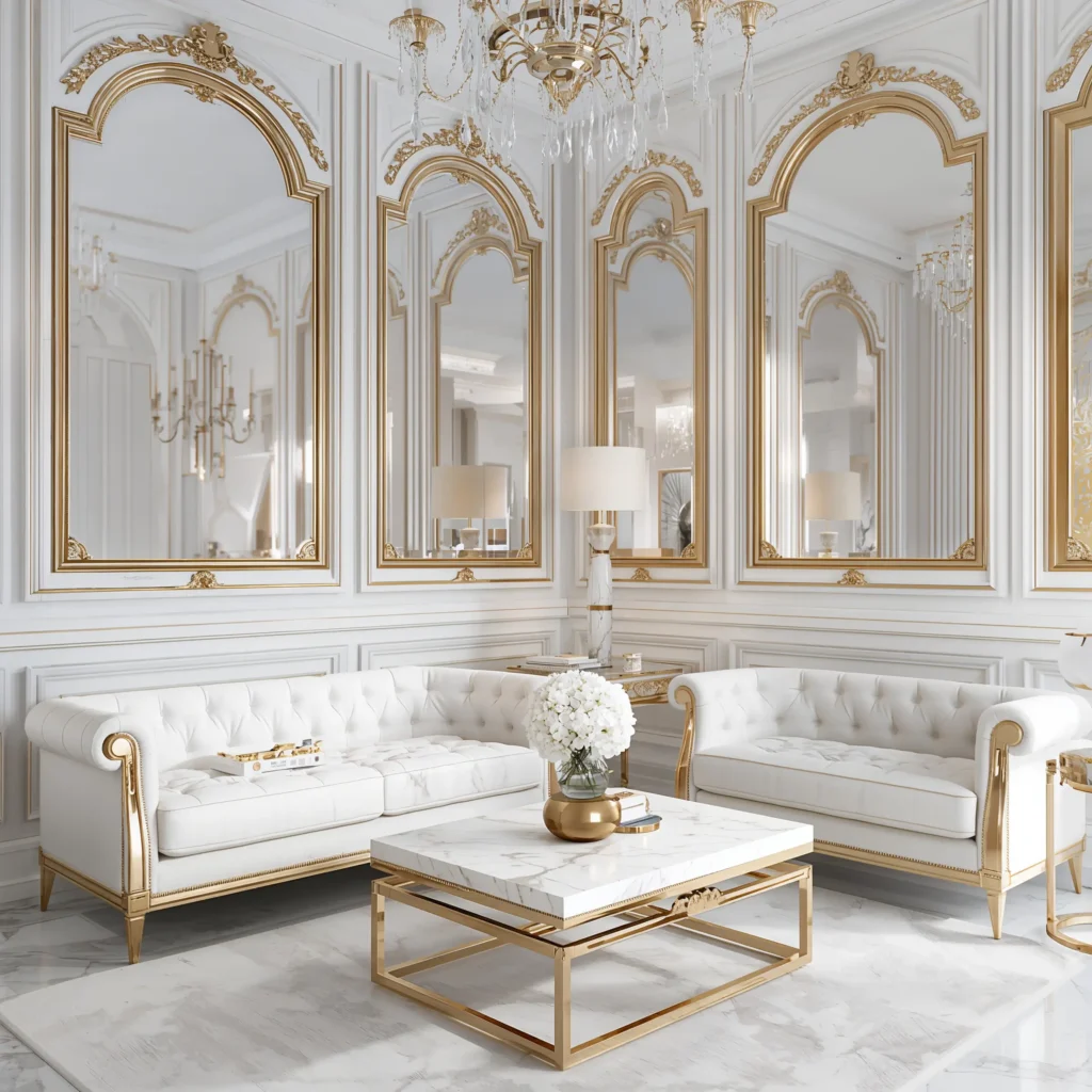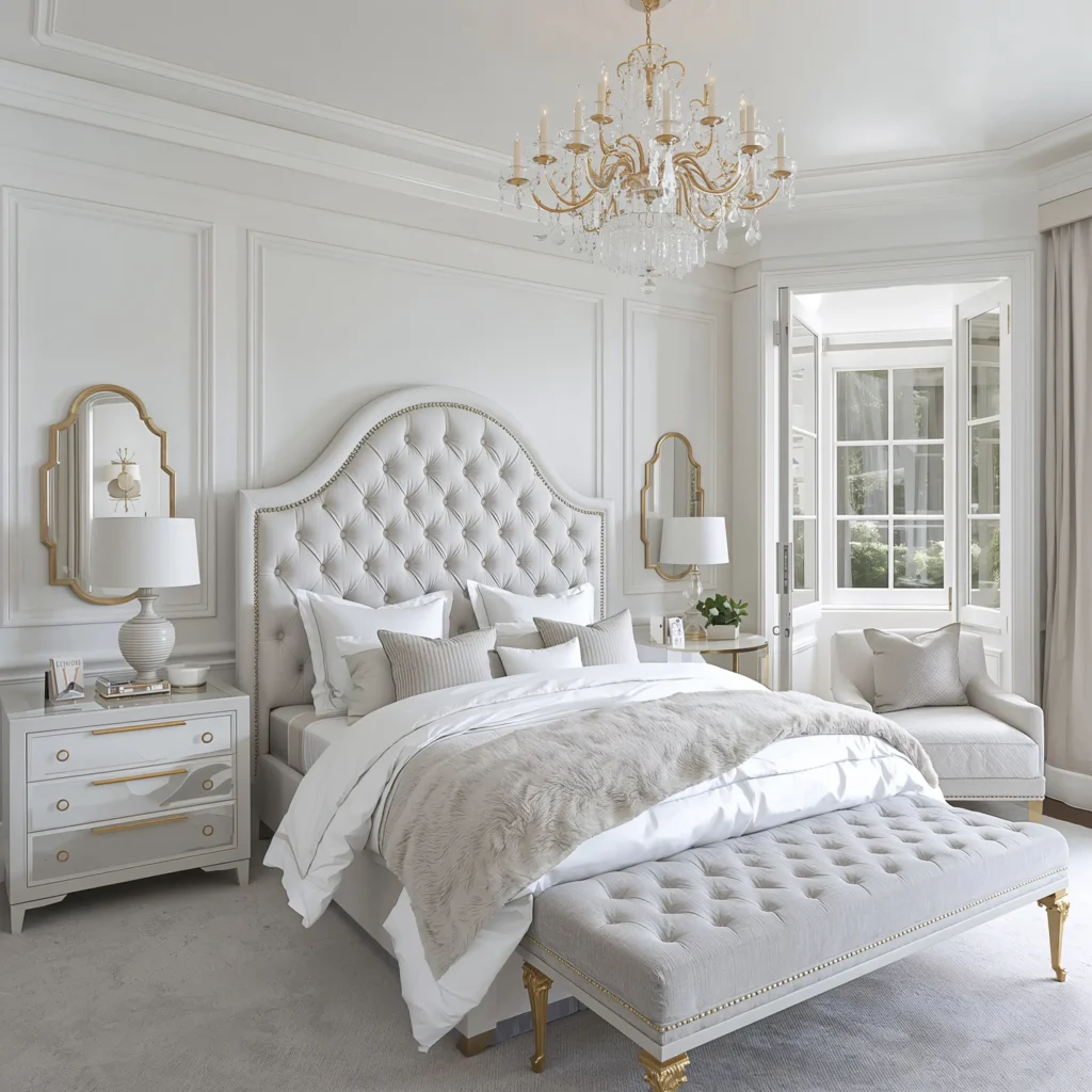 Sometimes you want to feel like you’re living in a five-star hotel, and that’s where white luxury glam comes in. This style says “I have expensive taste” without actually requiring a trust fund 🙂