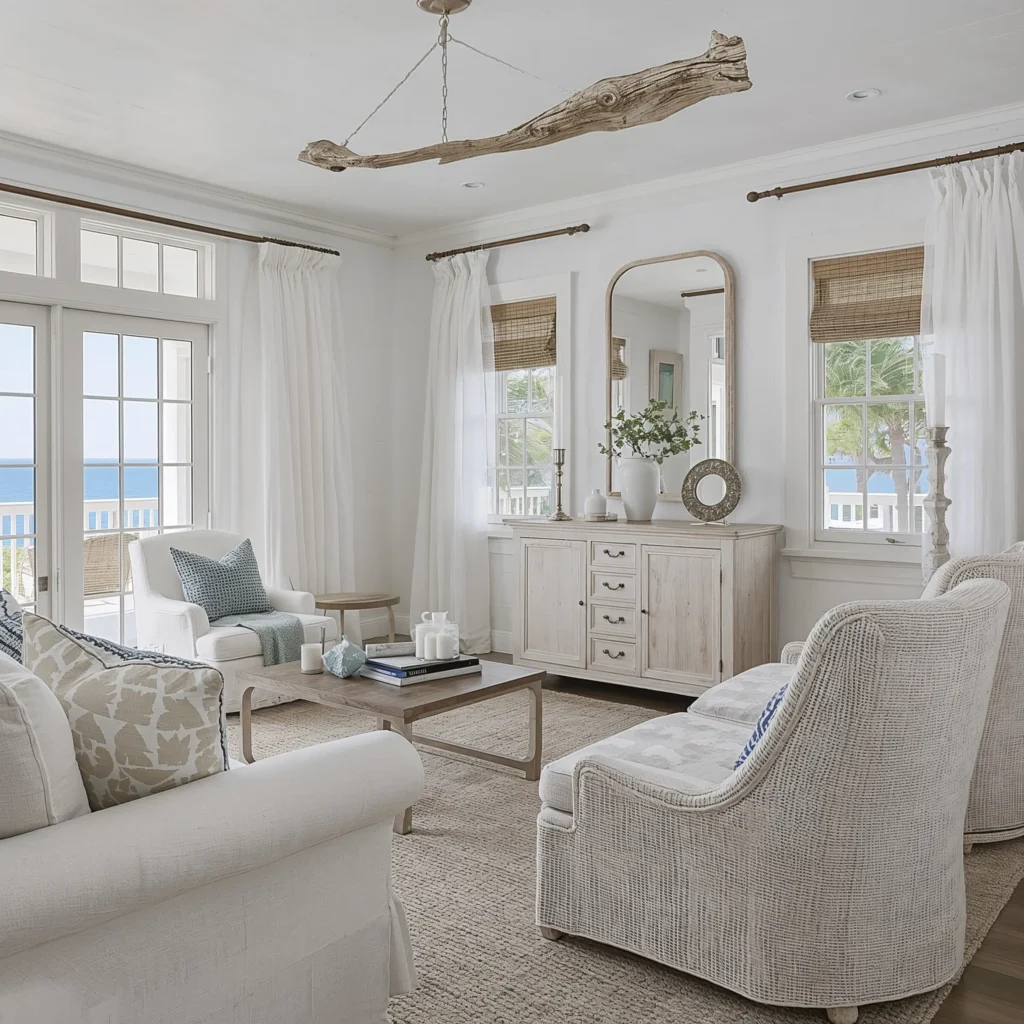 Keep your palette focused on whites, soft blues, and sandy beiges. Your room should feel like a breath of fresh ocean air, not a beach-themed restaurant.