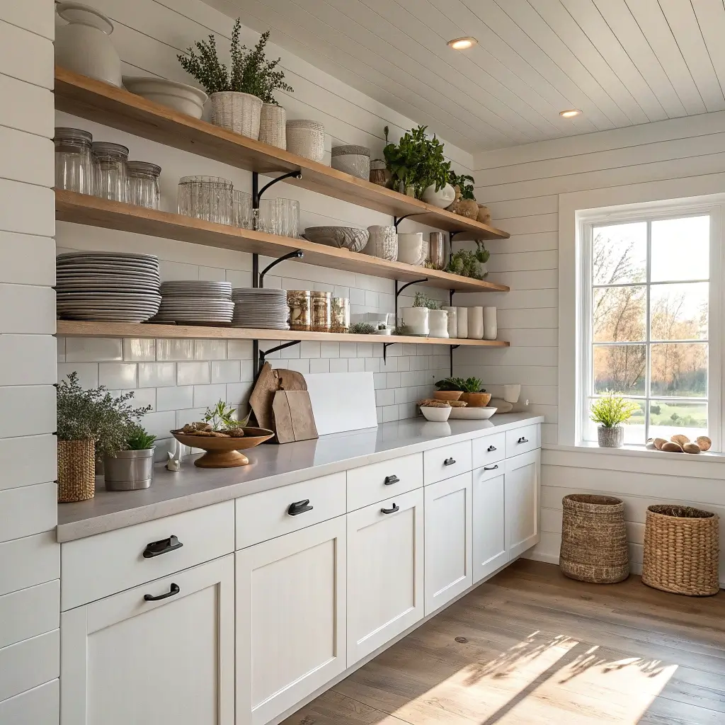 White Kitchen Open Shelves with Rustic Touch: The Warm Welcome