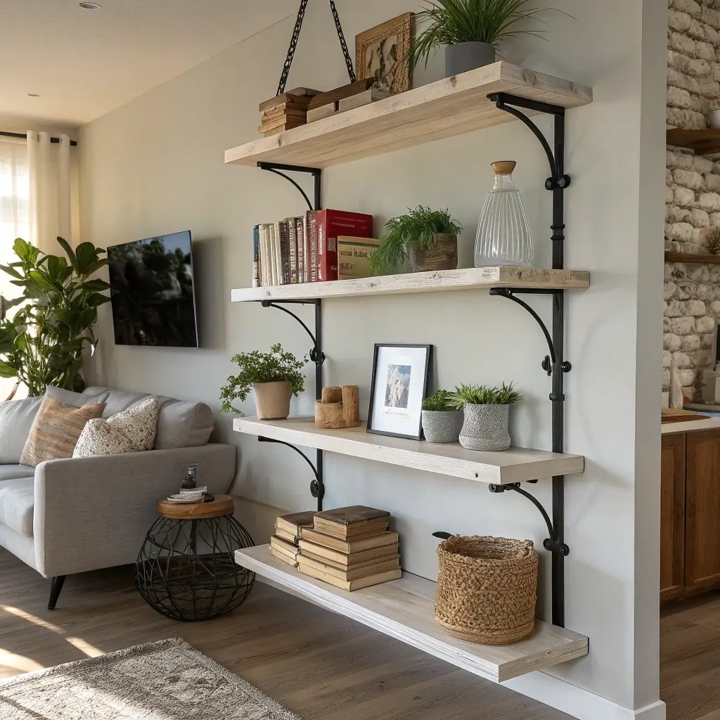 Choose contrasting hardware carefully. Black against white creates drama. I use matte black brackets that complement without overwhelming.