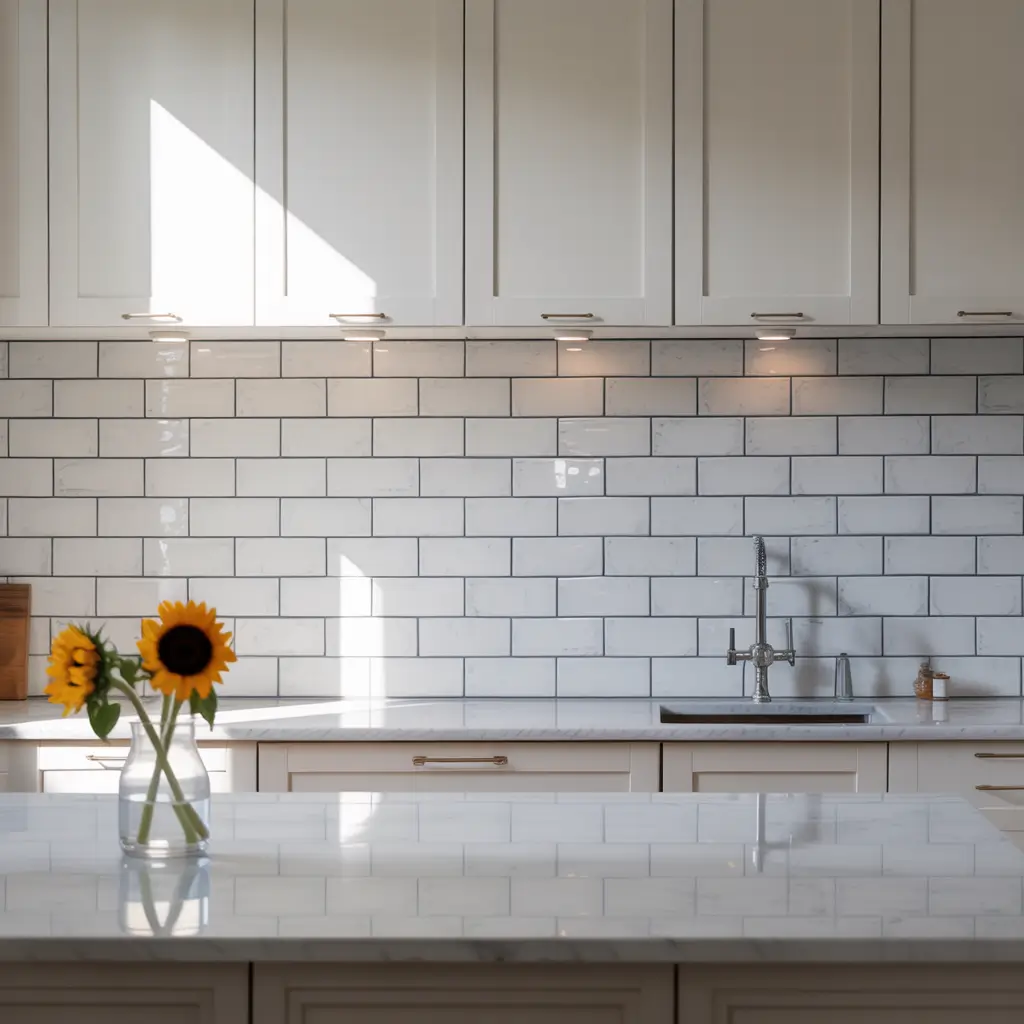 Real talk: I splurged on Carrara marble countertops two years ago, and pairing them with simple white subway tiles was the best decision ever. The subtle veining in the marble adds just enough pattern, while the subway tiles provide a clean, structured backdrop that doesn’t compete for attention.