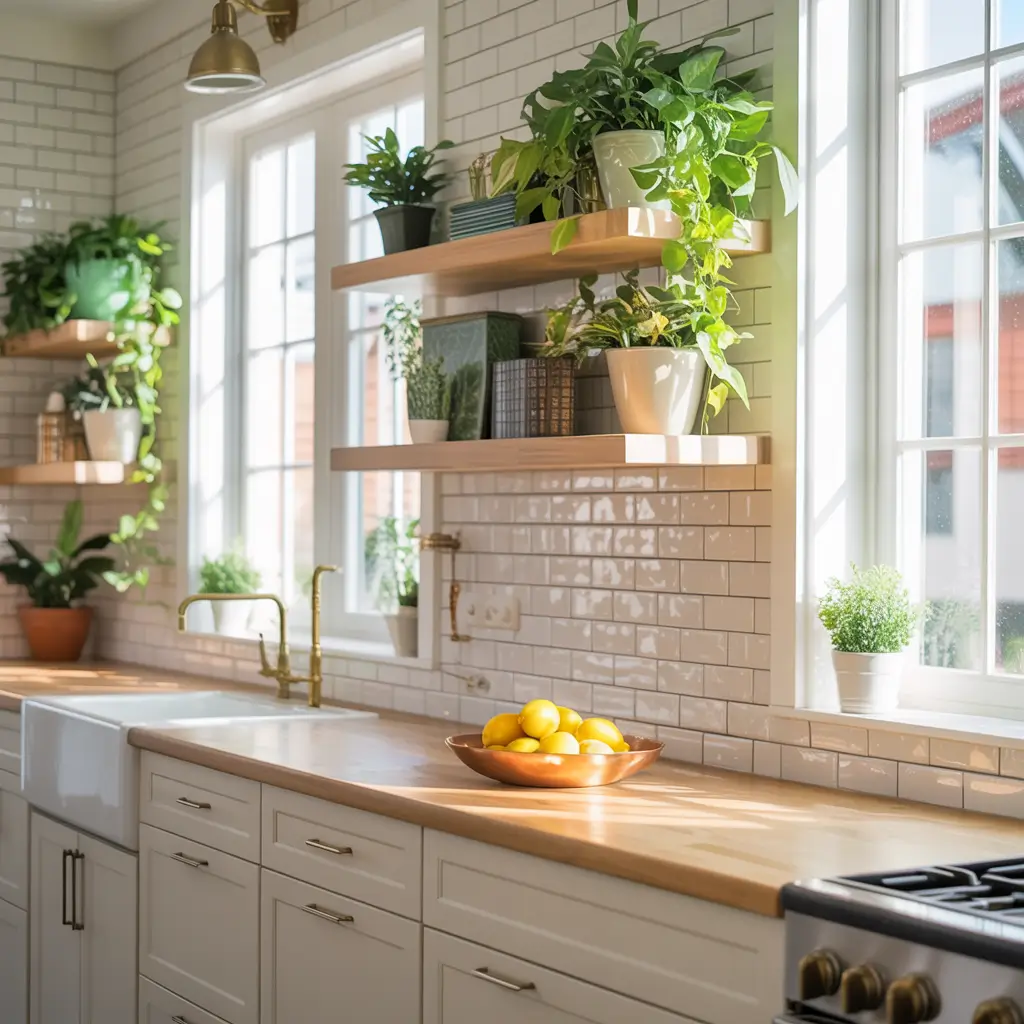 Want to bring life to your kitchen? Literally? Combine white subway tiles with open shelving and plants. This trio creates a fresh, organic feel that makes cooking feel less like a chore and more like therapy.