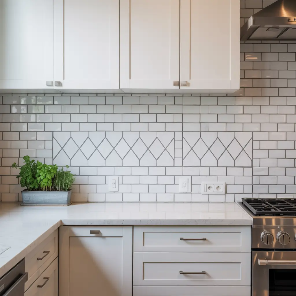 Ready to blow some minds? Use colored or contrasting grout in geometric patterns with your white subway tiles. This technique transforms basic tiles into custom artwork without the custom price tag.
