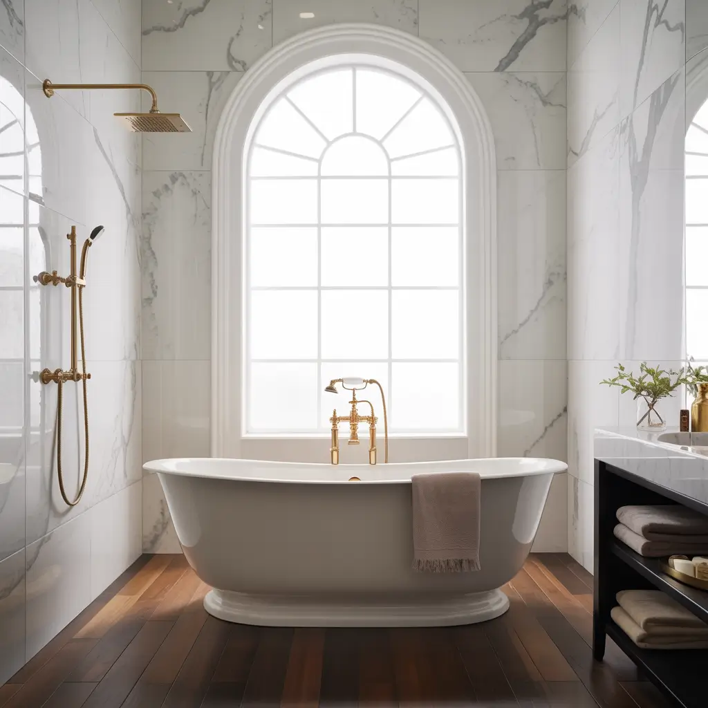 White Tiles with Gold Fixtures