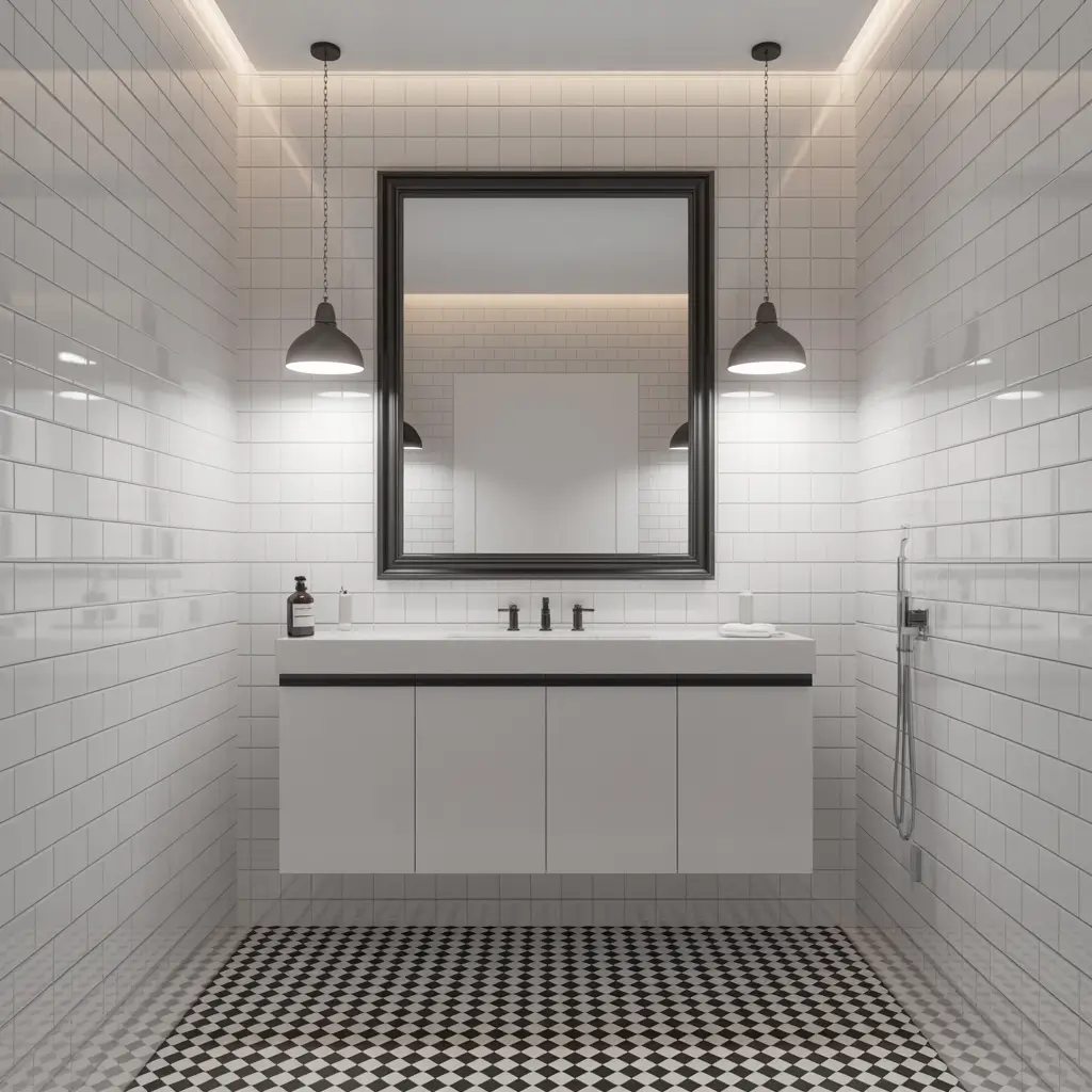 White Tiles with Black Grout Contrast