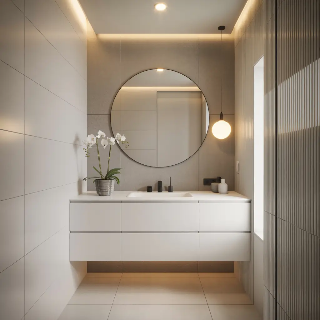 The trick to nailing the minimalist look? Keep everything else super simple. Think floating vanities, frameless mirrors, and maybe one plant if you’re feeling wild. Skip the busy patterns and excessive decorations – let those clean lines do the talking.