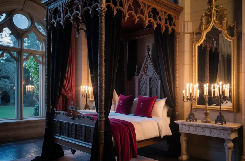 Embrace your inner vampire witch with a gothic moonlight chamber that’s equal parts elegant and mysterious. This isn’t hot topic gothic – think Victorian séance room meets modern mysticism.