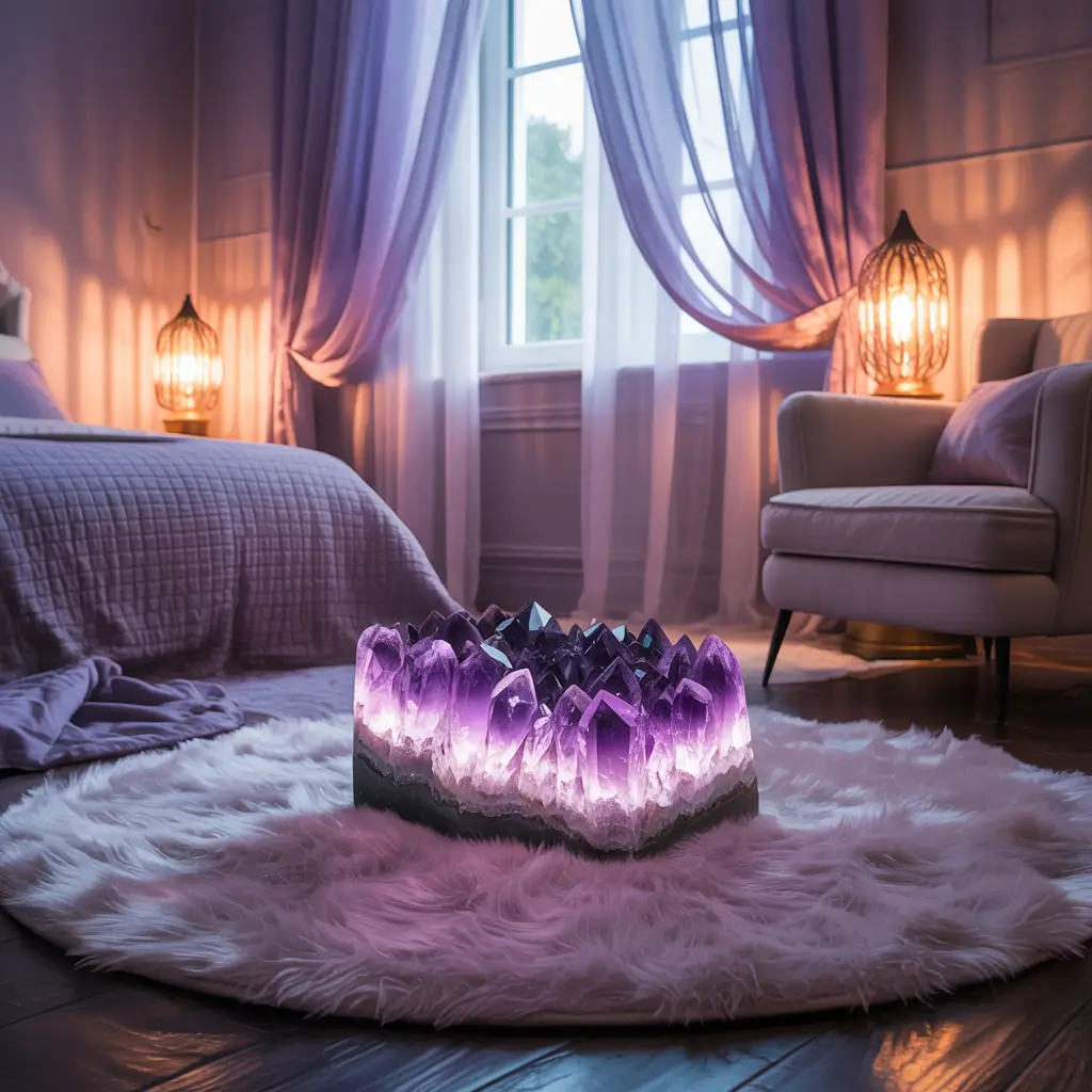 The energy in an amethyst room feels instantly calming and psychically open. Perfect for dream work and meditation.