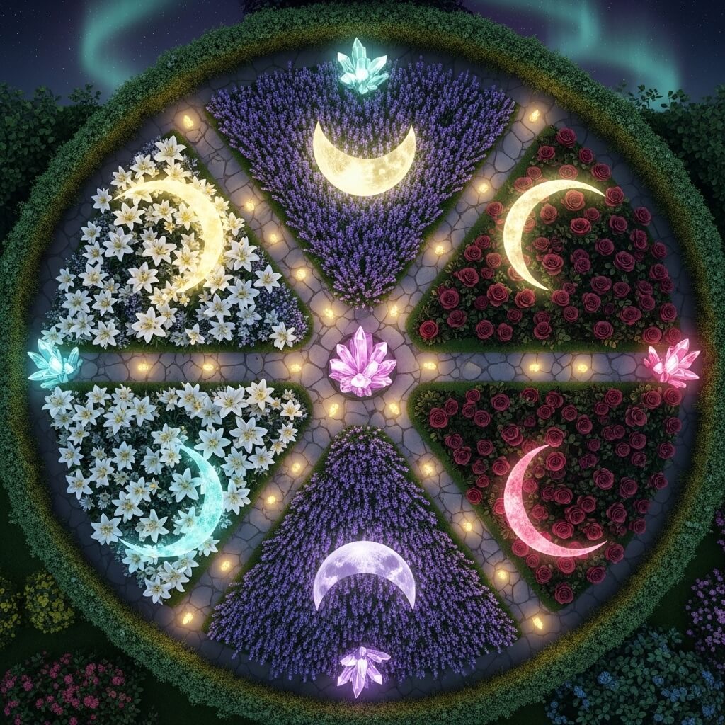 Want to create a garden that literally reflects the cosmic cycles? A moon phase flower garden uses strategic color placement and plant timing to mirror the lunar cycle throughout the year. It’s probably one of the more challenging designs to execute, but the results are absolutely magical.
