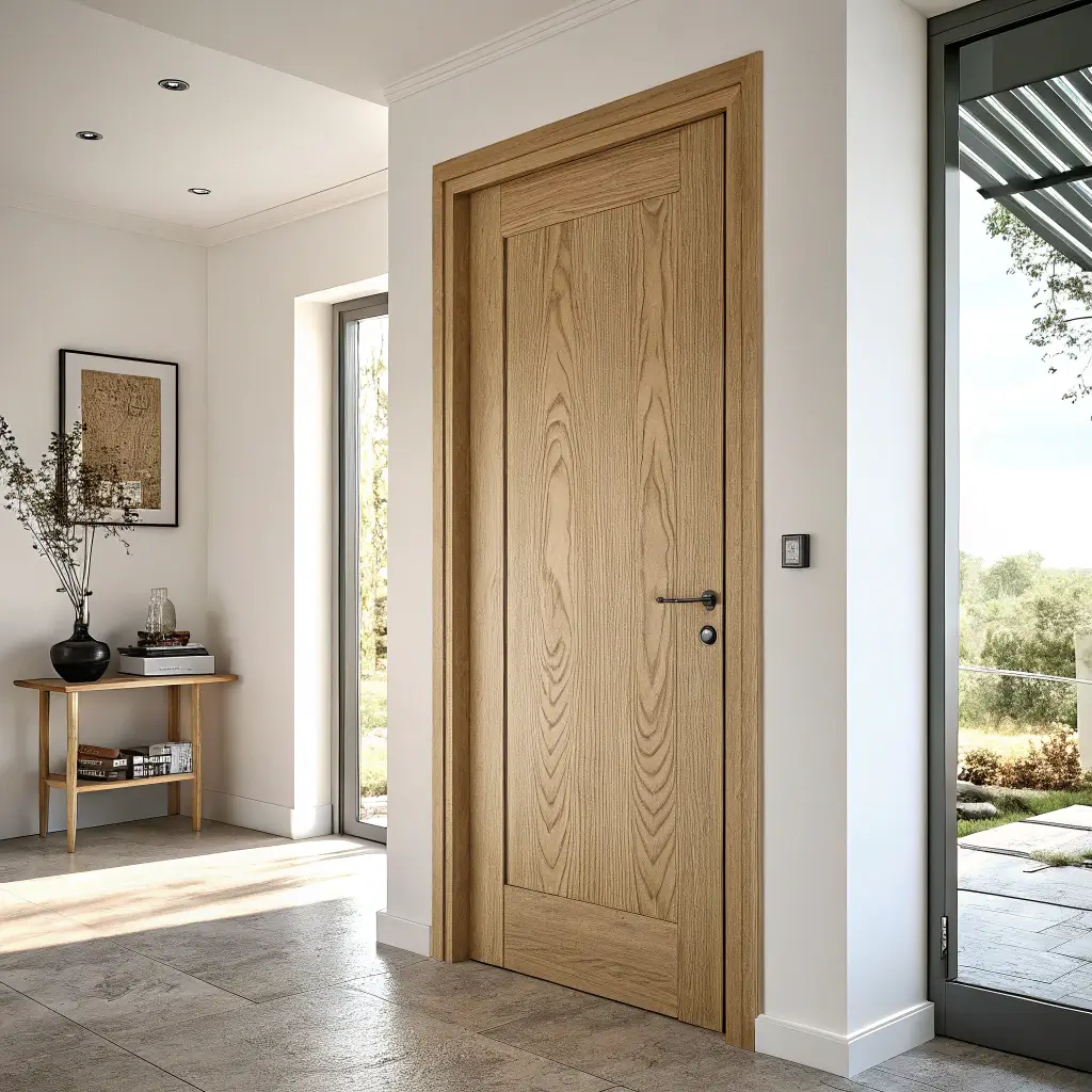 Flush doors with natural grain finishes celebrate wood in its purest form. No panels, no decoration, just the honest beauty of timber presented without pretense.
