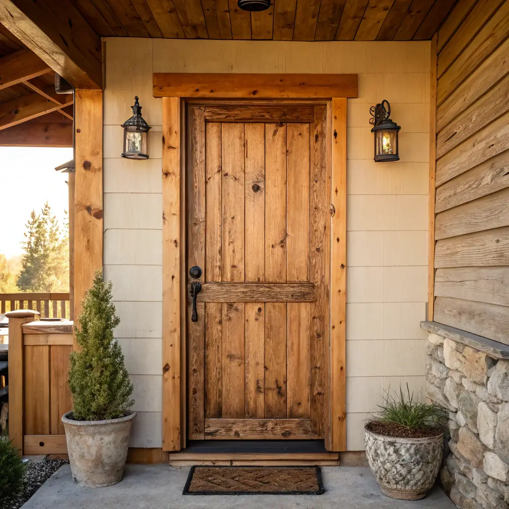 Rustic doors embrace what refined doors try to eliminate—knots, cracks, weathering, and natural imperfections that tell the wood’s story. These doors bring authenticity that manufactured “distressing” can’t match.