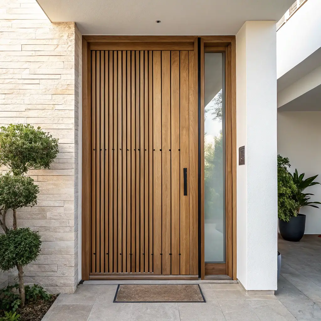 Vertical slat doors bring rhythm and visual interest through repetition. These contemporary designs add texture without overwhelming, creating doors that feel both modern and timeless.