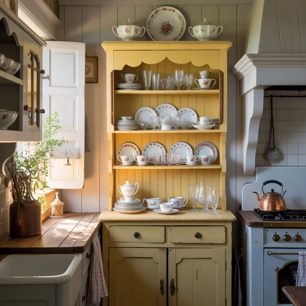 That antique hutch gathering dust in your garage? Transform it with yellow paint for instant farmhouse credibility. These pieces already have the character; they just need the right color to shine.