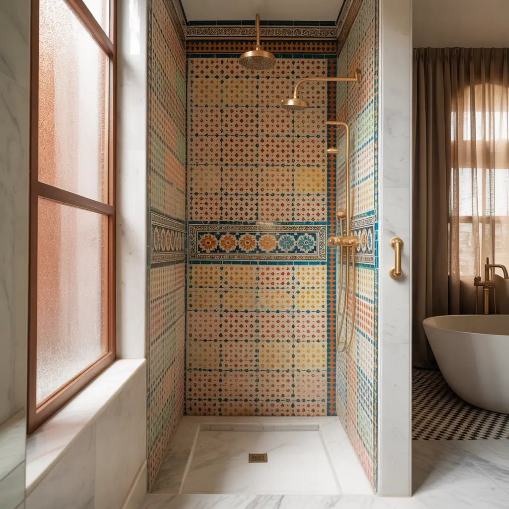 Nothing screams authentic Moroccan luxury quite like covering your shower walls in traditional zellige tiles. I installed these in my master bathroom last year, and let me tell you – stepping into that shower feels like teleporting to a hammam in Fez.