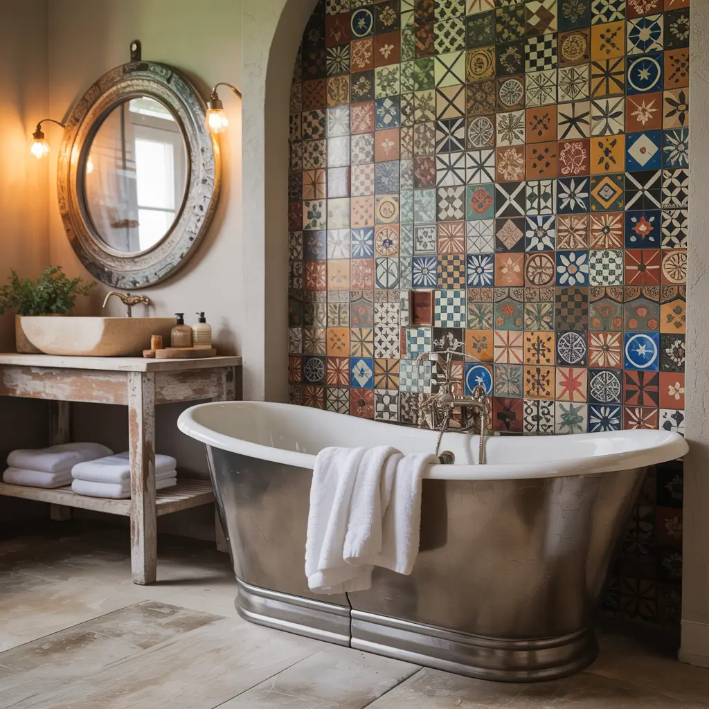 I helped my neighbor design one using weathered-looking terracotta zellige tiles, and the transformation was insane. The wall behind her freestanding tub went from forgettable drywall to this stunning focal point that looks like it belongs in a centuries-old riad.