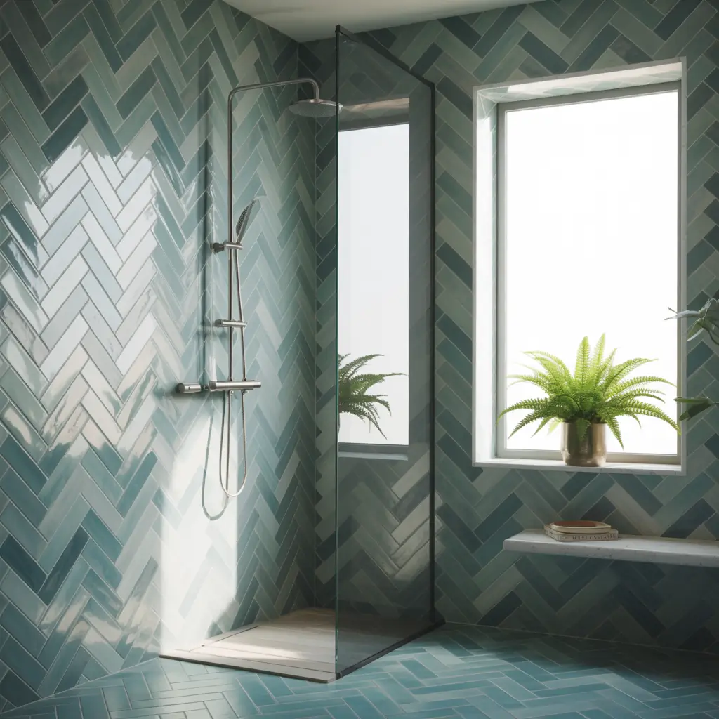 The herringbone pattern works amazingly on both floors and walls. I’ve seen it used as a shower floor with larger zellige tiles on the walls, and the contrast between patterns creates this sophisticated, layered look.