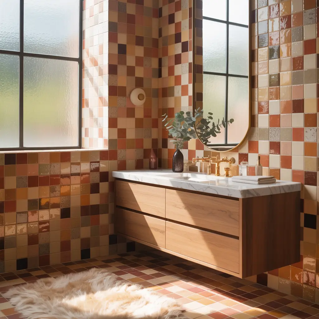 There’s something about warm-toned zellige tiles that makes a bathroom feel like a hug. I’m talking terracotta, honey, amber, and all those sunset colors that make you want to light a candle and soak in the tub.