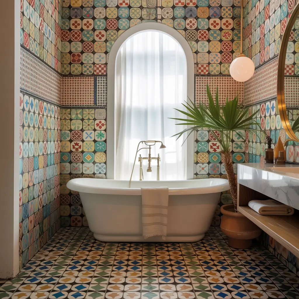 Whether you go bold with colorful geometric patterns or keep it simple with a neutral backsplash, zellige tiles bring soul to your bathroom. They’re imperfect in all the right ways, catching light like tiny mirrors and adding texture that makes you want to reach out and touch them.