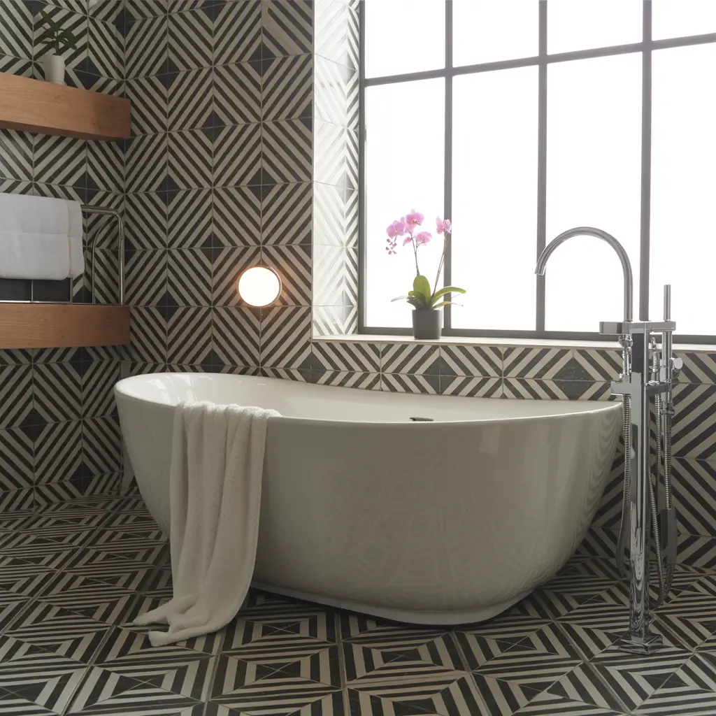 Ready to make a statement? Bold geometric designs with zellige tiles turn your bathroom into an art installation. We’re talking diamonds, hexagons, stars – patterns that make people stop and stare.