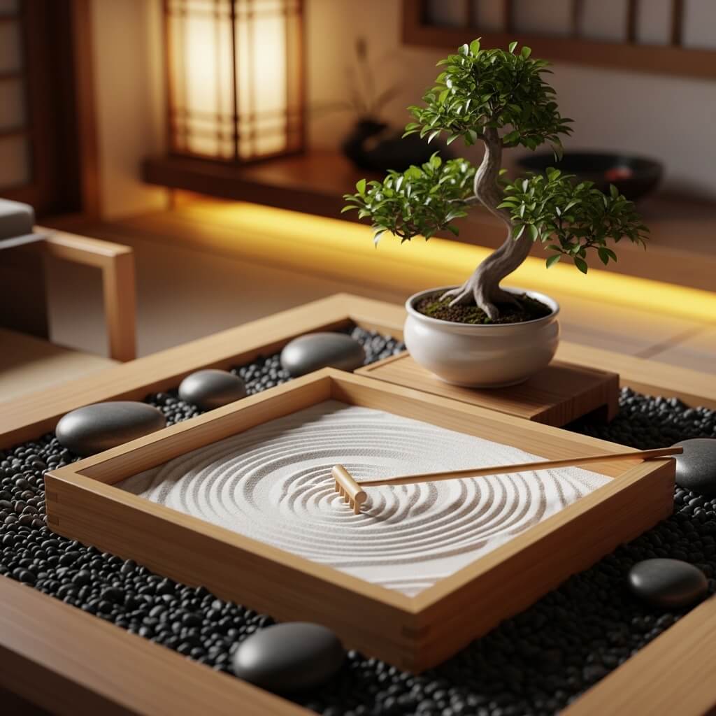 Not everyone has outdoor space, and you know what? That’s totally fine. An indoor Zen sand tray garden brings that meditative energy right into your living room, home office, or bedroom. Think of it as a 3D stress ball that’s actually beautiful to look at.