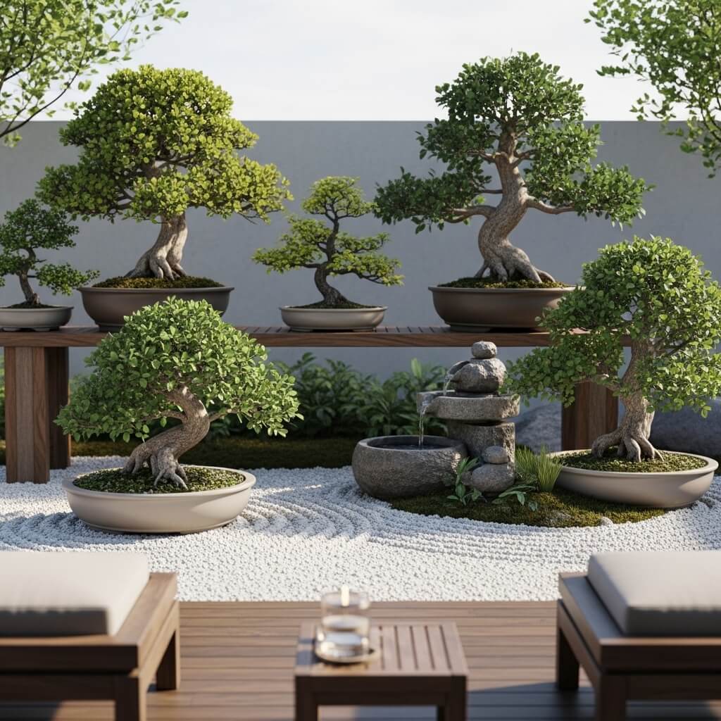 Last but definitely not least, let’s talk about maximizing those tiny patio spaces with the ultimate symbol of patience and artistry—bonsai trees. A tiny patio Zen garden centered around bonsai creates a living art gallery that evolves with the seasons.